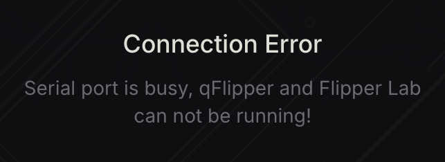 Make sure qFlipper is closed when using Web Updater or Flipper Lab/App, and vice versa. Only use one installation method at a time.