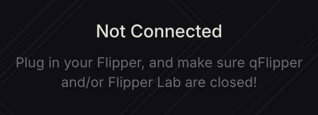 | Not Connected Click Connect and make sure that nothing else is using your Flipper. | ![]() |