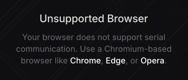 | Unsupported Browser Your browser does not support Web Serial, you need to switch to one that does. | ![]() |